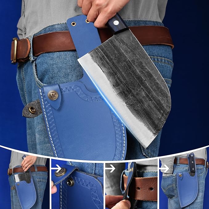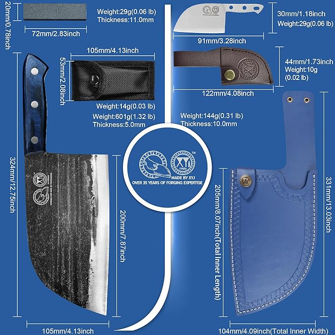 XYJ Authentic Since 1986,Ancient Forged Butcher Knives,Serbian Chef Knife With Sheath,Tiny Knife,Chinese Vegetable Meat Cleaver For Kitchen Camping Outdoor,Full Tang,High Carbon Steel (7.5 inch)