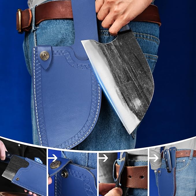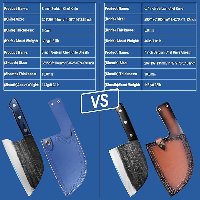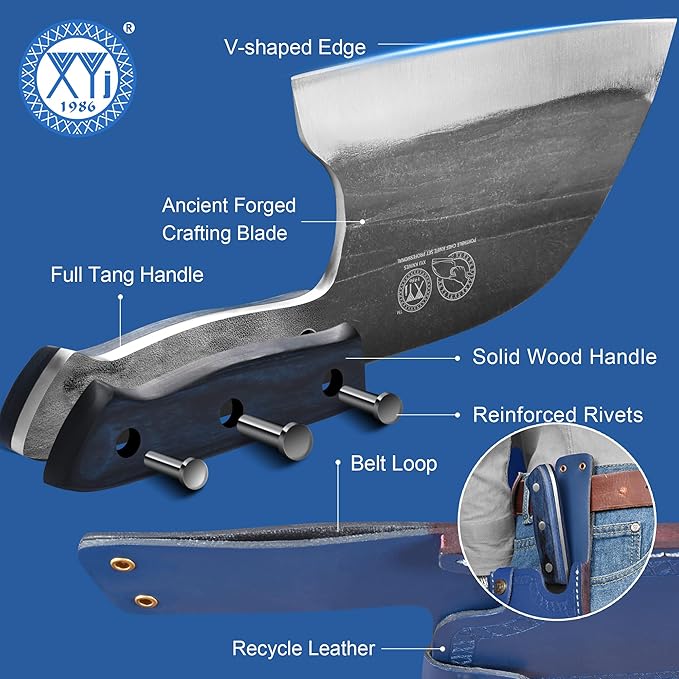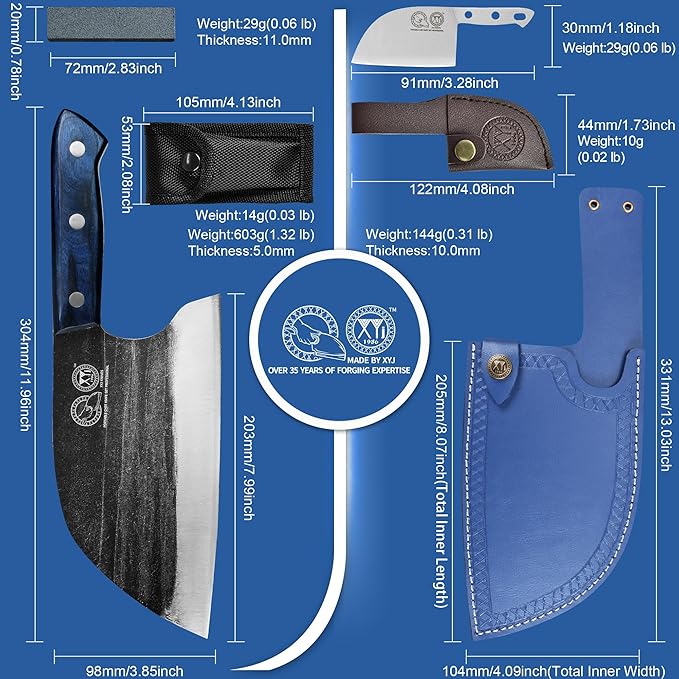 XYJ Authentic Since 1986,Ancient Forged Butcher Knives,Serbian Chef Knife With Sheath,Tiny Knife,Chinese Vegetable Meat Cleaver For Kitchen Camping Outdoor,Full Tang,High Carbon Steel (8 inch)