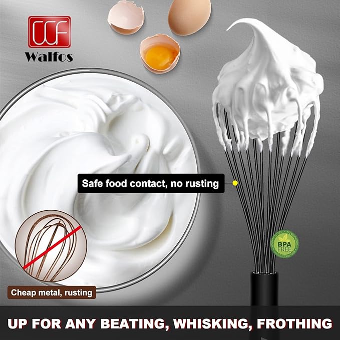 About This Non scratch silicone coated : Walfos whisk is made of 1.65 mm sturdy stainless steel with wires coated... Read more