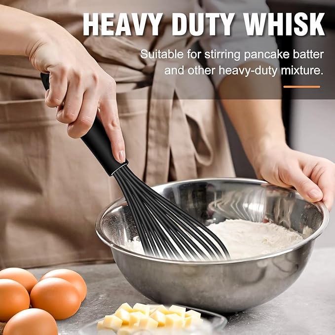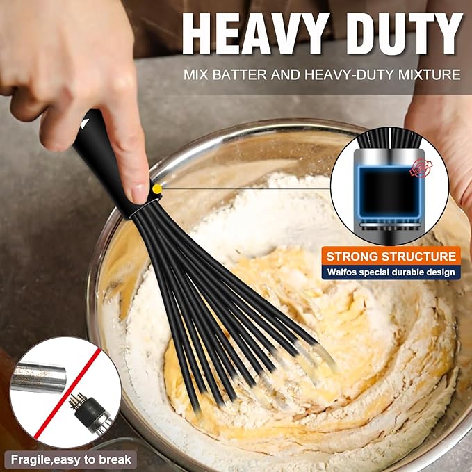 Walfos Silicone Whisk,11 Inch Silicone Whisks for Cooking Non Scratch,BPA Free Kitchen Whisk Heat Resistant (480°F) Perfect for Blending,Whisking,Beating,Mixing.Dishwasher Safe (Black)