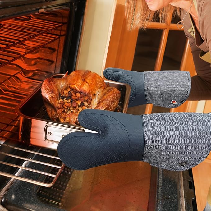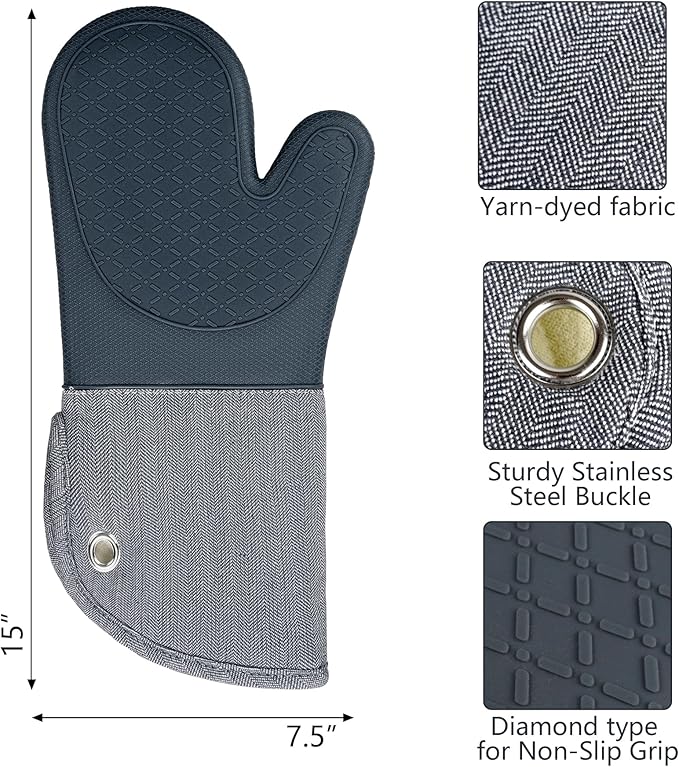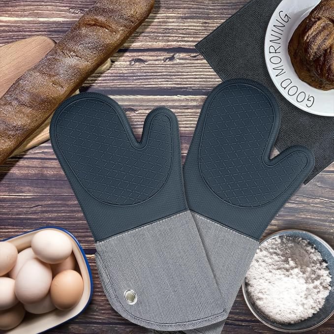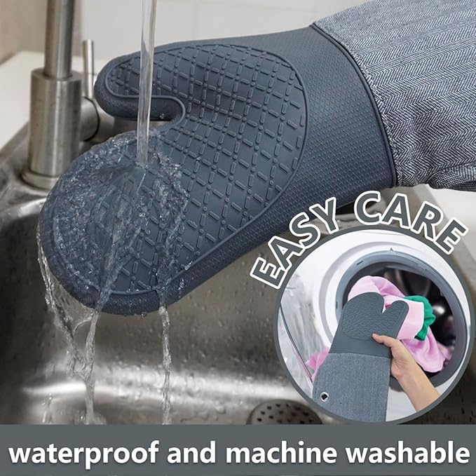 Professional Microwave Silicone Oven Mitts one Pair, Kitchen Mitten Set for Heat Resistant with 500 Degrees, Kitchen Gloves Pot Holder for BBQ Cooking Baking (Gray)