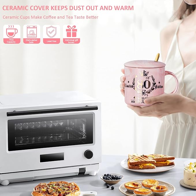 80th Birthday Gifts for Women, 14oz Pink Coffee Mug with Gold Pattern, Best Gifts for 80 Year Old Grandma, Mom, Sister, Friend, Fabulous 80 Limited Edition, 1943 Birthday Gifts for Women.