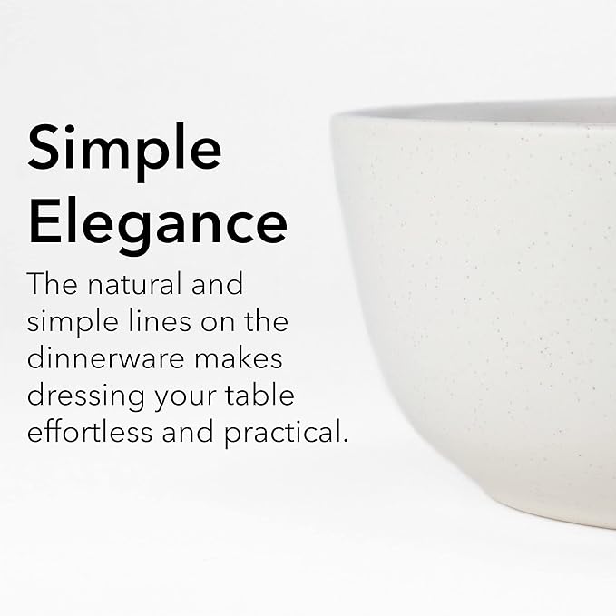 SKUGGA Round Stoneware 16pc Double Bowl Dinnerware Set for 4, Dinner and Side Plates, Cereal and Pasta Bowls - Matte White(466077)