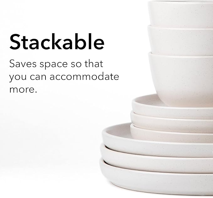 SKUGGA Round Stoneware 16pc Dinnerware Set of 4, Dinner Plates, Side Plates, Cereal Bowls, Mugs - Matte White (466817)