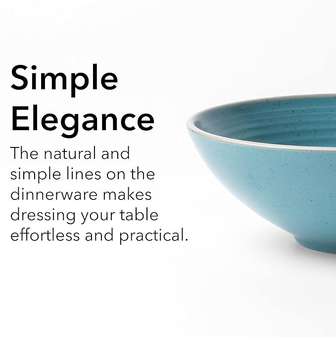 RINGAR Round Stoneware 16pc Dinnerware Set of 4, Dinner Plates, Side Plates, Cereal Bowls, Mugs - Speckle Matte Turquoise (428693)