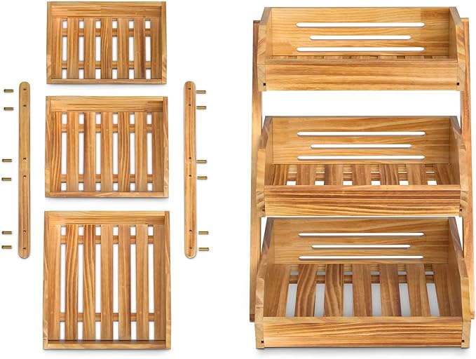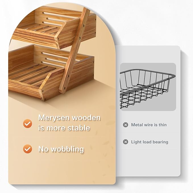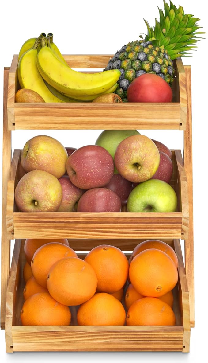 3 Tier Wooden Fruit Basket For Kitchen, Bread Vegetable Fruit Basket Bowl Stand, Farmhouse Fruit Bowl for Countertop, Large
