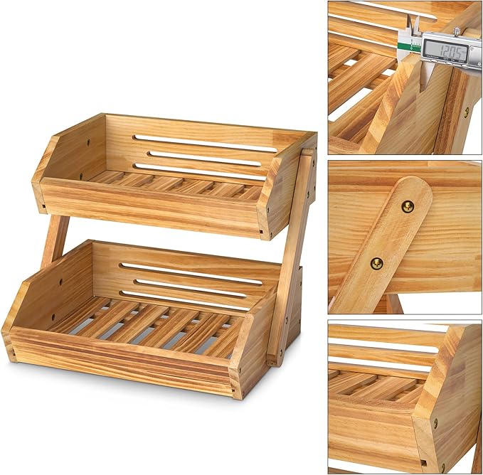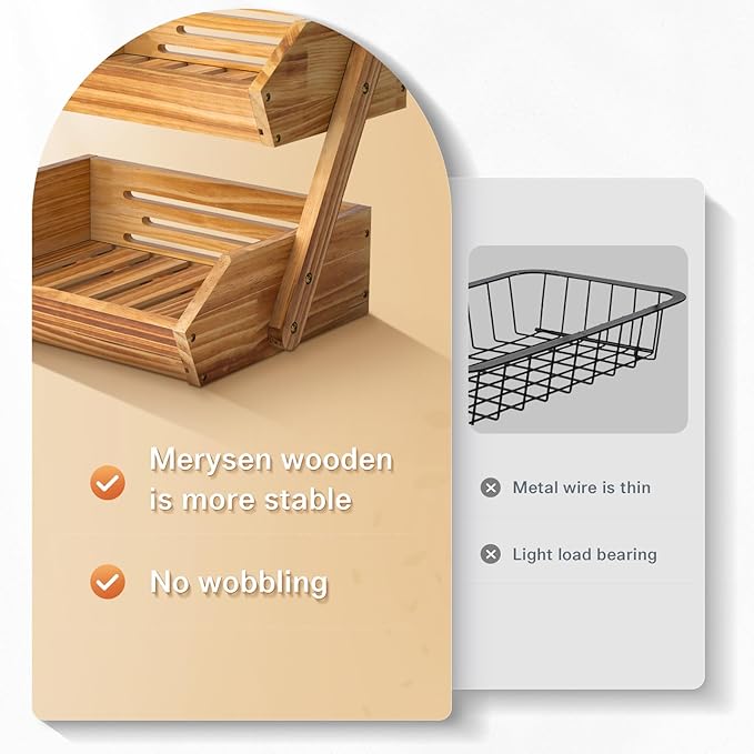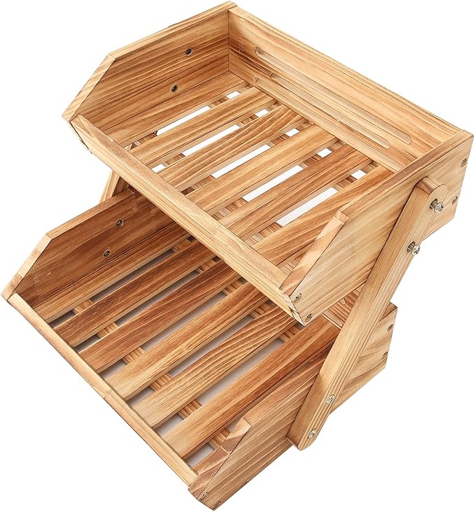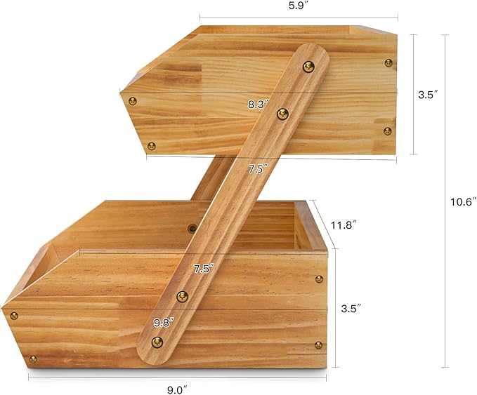 2 Tier Wooden Fruit Basket For Kitchen, Bread Vegetable Fruit Basket Bowl Stand, Farmhouse Fruit Bowl for Countertop, Large