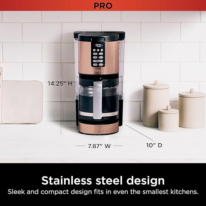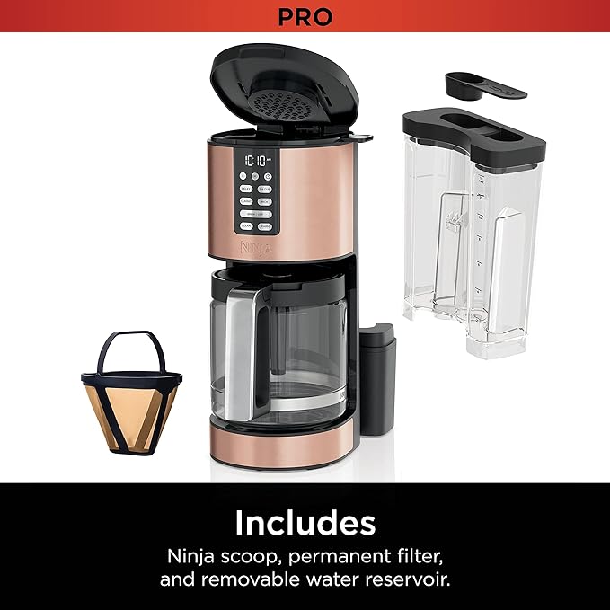 Ninja Programmable XL 14-Cup Coffee Maker PRO with Permanent Filter, 2 Brew Styles Classic & Rich, Delay Brew, Freshness Timer & Keep Warm, Dishwasher Safe, Copper, DCM201CP