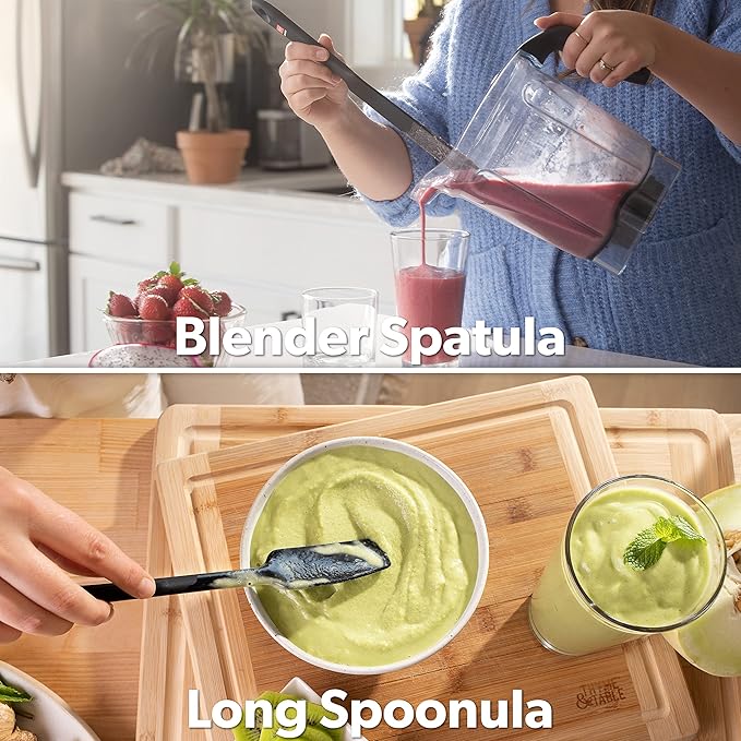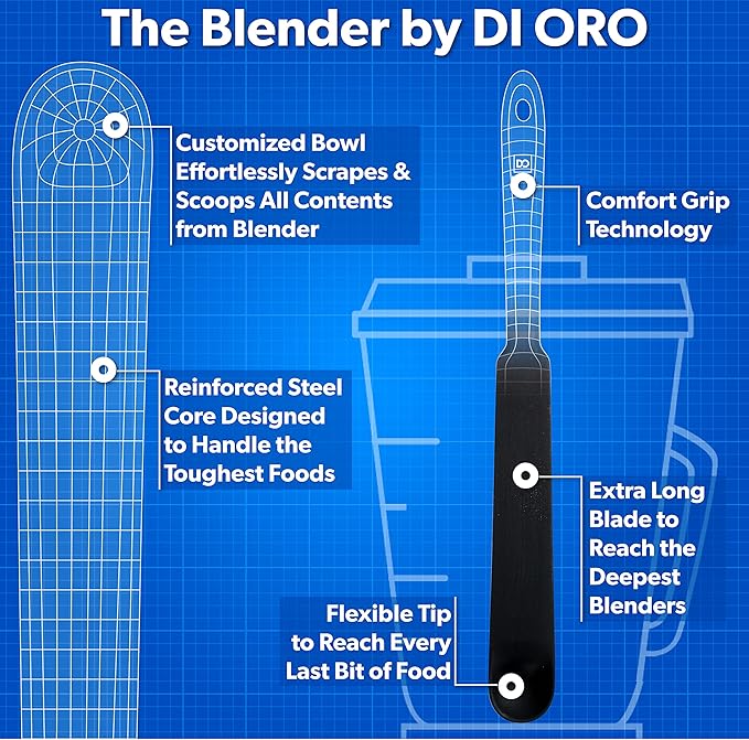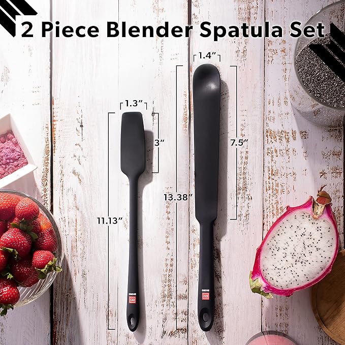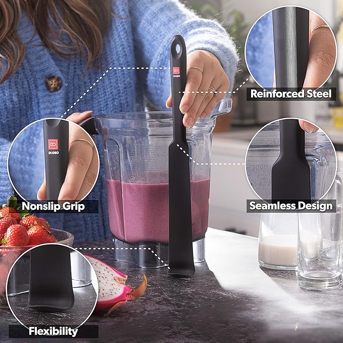 DI ORO Silicone Blender & Jar Spatulas - Heat Resistant Kitchen Utensil Set for Cooking, Mixing, Baking, & Scraping (2pc, Black)