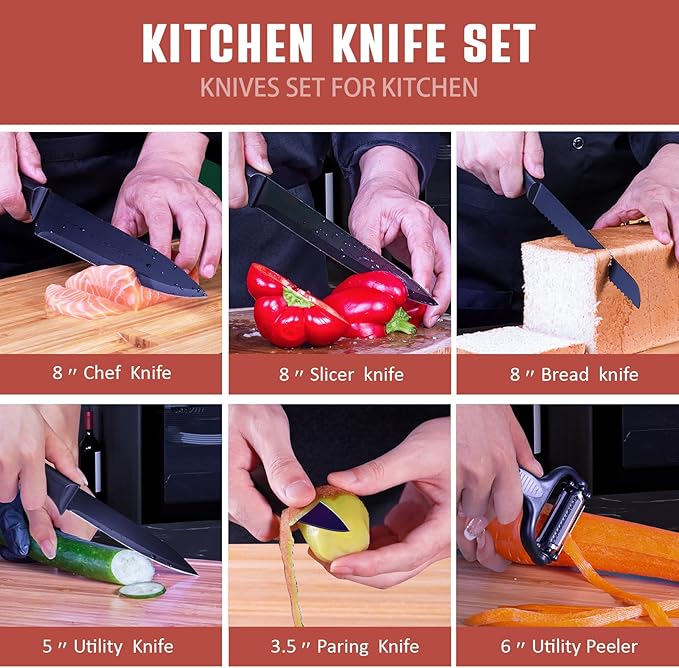 About This Knives Set for Kitchen:Knife set with block contains 5-set of knives & 5-kitchen accessories to meet your maximum... Read more