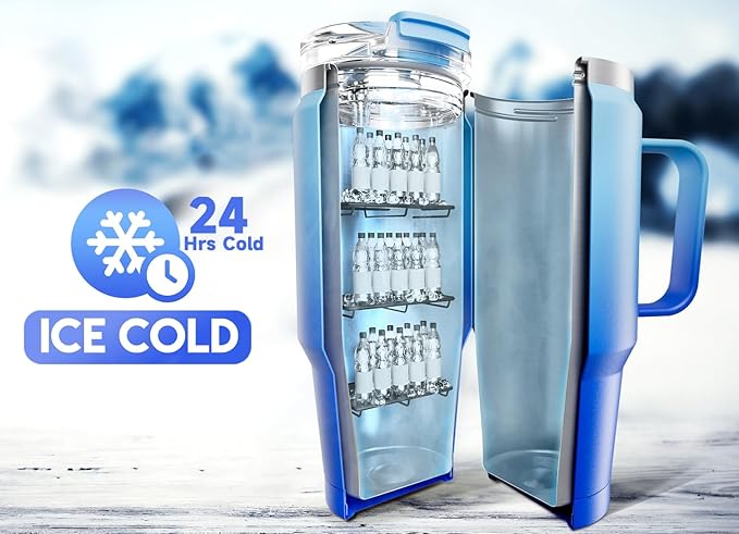 Meoky 32oz Tumbler with Handle, Stainless Steel Travel Mug with 2-in-1 Straw and Sip Lid, Vacuum Insulated Coffee Mug, 100% Leak Proof, Keeps Cold for 24 Hours or Hot for 8 Hours (Sky)