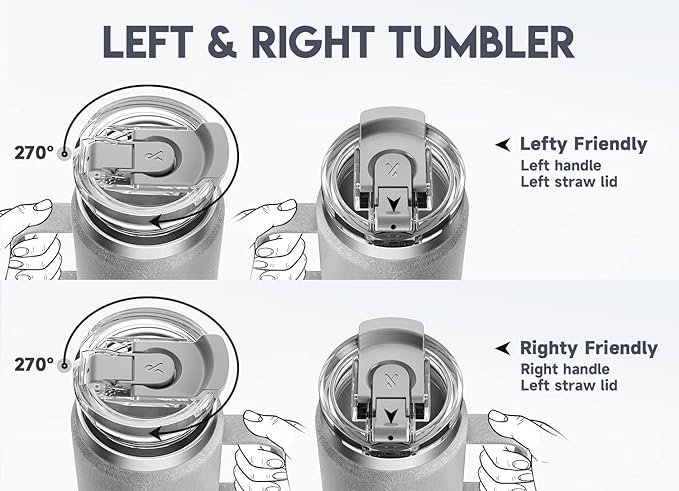 Meoky 24oz Travel Mug, Triple Insulated Stainless Steel Tumbler with Handle and 2-in-1 Straw and Sip Lid, 100% Leak Proof, Keeps Cold for 24 Hours or Hot for 8 Hours, Cupholder Friendly (Rock)