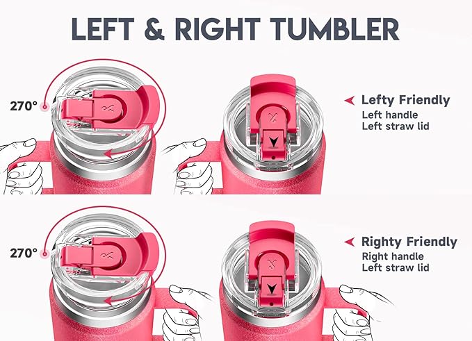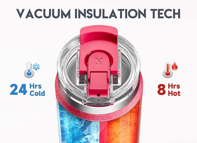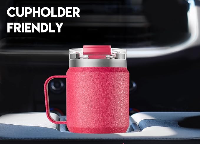 Meoky 24oz Travel Mug, Triple Insulated Stainless Steel Tumbler with Handle and 2-in-1 Straw and Sip Lid, 100% Leak Proof, Keeps Cold for 24 Hours or Hot for 8 Hours, Cupholder Friendly (Ruby)
