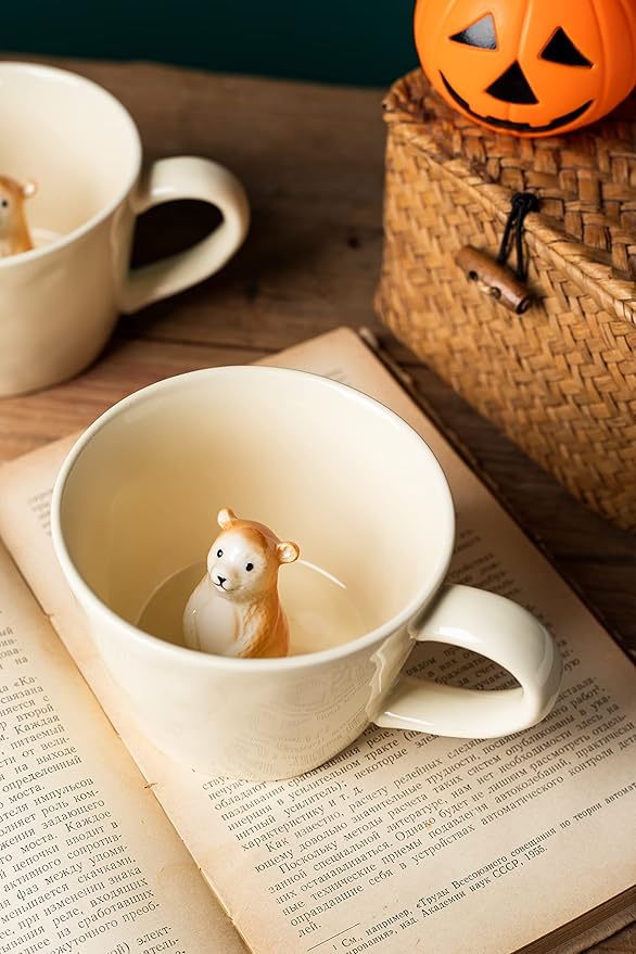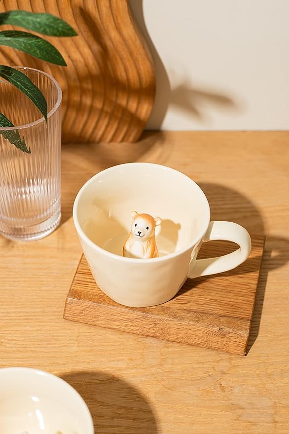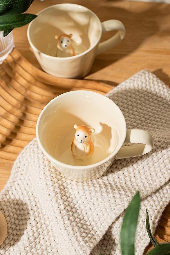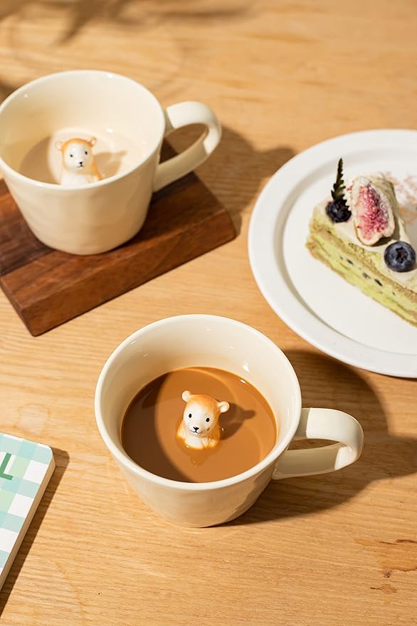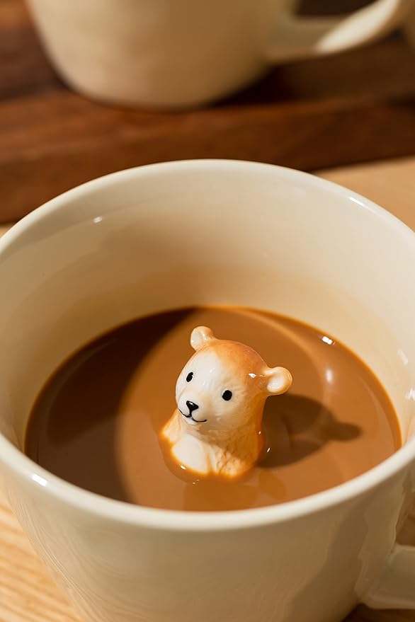 DIHOclub Bear Ceramic Cup Hidden 3D Animal Inside Mug,Cute Cartoon Handmade Figurine Mugs,Holiday and Birthday Gift for Coffee Milk Tea Lovers,12 OZ(Cream Color)