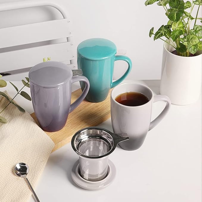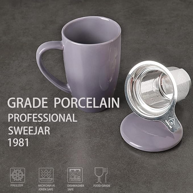 Sweejar Porcelain Tea Infuser Mug with Lid, 16 oz Teacup with Strainers for Loose Leaf Tea, Microwave and Dishwasher Safe Coffee Mug(Gradient Purple)