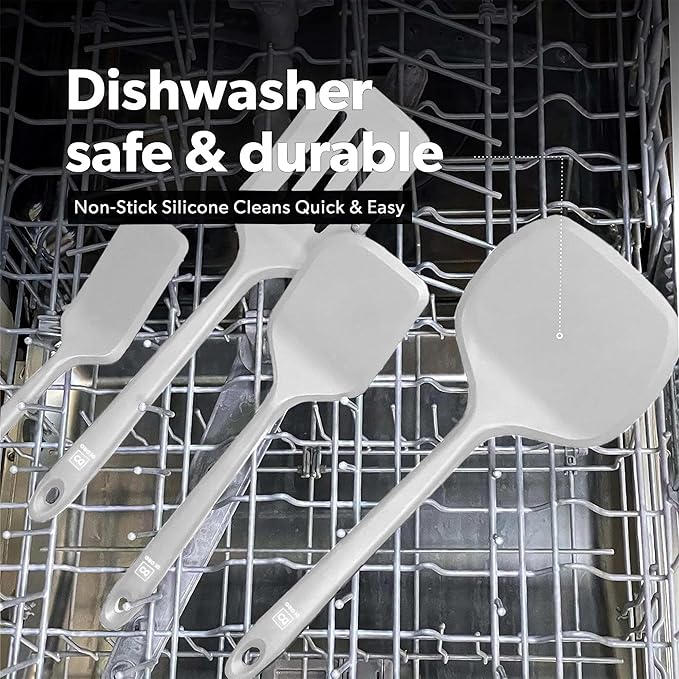 New DI ORO Seamless Series Moda 4-Piece Silicone Turner Spatula Set - 600°F Heat-Resistant Flexible Kitchen Spatulas for Nonstick Cookware - Flippers for Eggs & Pancakes - Utensils for Cooking (Stone)