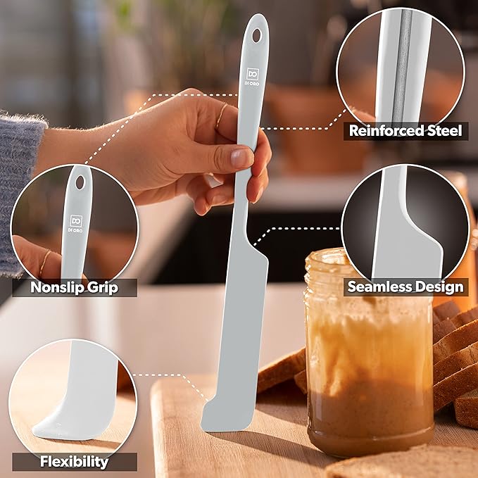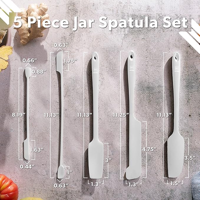 DI ORO Silicone Jar Spatulas for Scraping - Rubber Spatulas Silicone Heat Resistant - Kitchen Spatulas Nonstick Cookware Safe - Silicone Utensil Set for Blenders, Mixing, Baking, & Makeup (5pc, Stone)