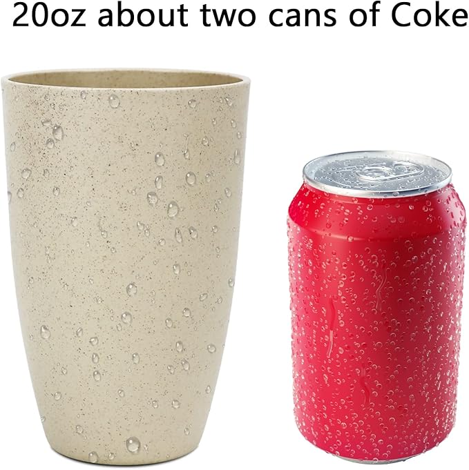 Homienly Wheat Straw Cups - Set of 6 Unbreakable Drinking Cups - 20 oz Reusable Dishwasher Safe Water Glasses - Kitchen Tumblers