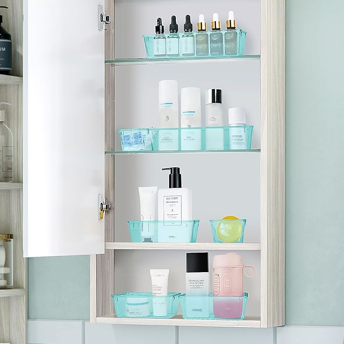 WOWBOX 25 PCS Plastic Drawer Organizer Set, 4 Sizes Desk Drawer Divider Organizers and Storage Bins for Makeup, Jewelry, Gadgets for Kitchen, Bedroom, Bathroom, Office, Sea Blue
