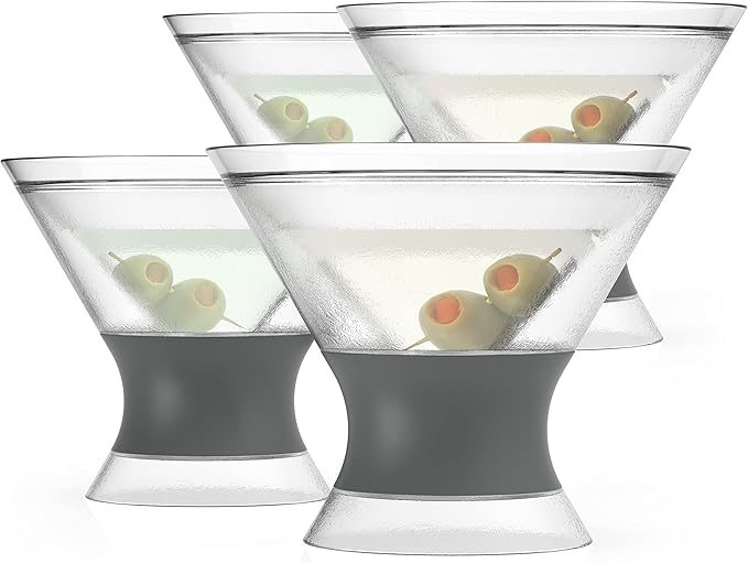 Host Freeze Insulated Martini Glasses Set of 4, Plastic Freezer Gel Chiller Double Wall Stemless Coupe and Cocktail Glass, 9 oz, Grey