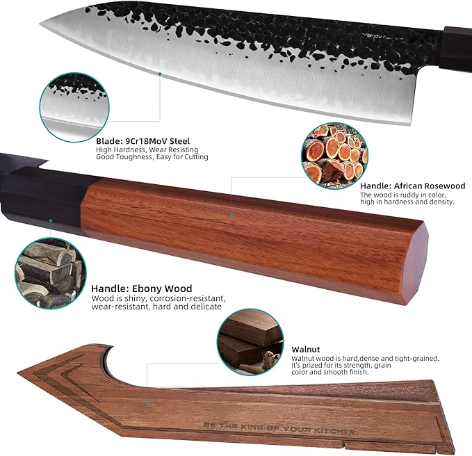 About This [KNIFE BLADE QUALITY] FINDKING's dynasty series uses 9CR18MOV. A great steel for the everyday use of any chef.... Read more