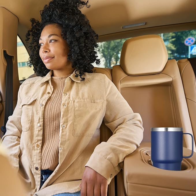 VEGOND 20 oz Tumbler with Handle Lid and Straw, Stainless Steel Insulated Travel Coffee Mug Spill Proof Double Wall Metal Tumbler Cup Keeps Drink Hot and Cold, Navy Blue 1 Pack
