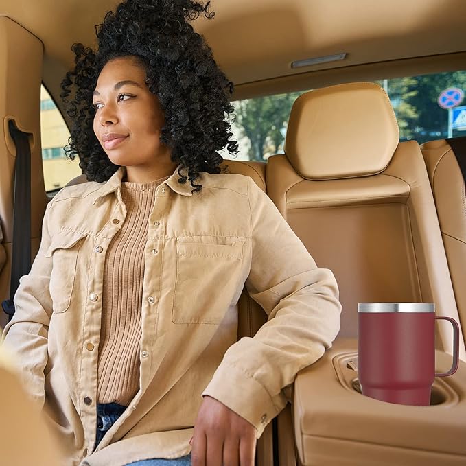 VEGOND 20 oz Tumbler Bulk with Handle Lid and Straw, Stainless Steel Insulated Travel Coffee Mug Set, Spill Proof Double Wall Metal Tumblers Cups, Wine Red 12 Pack