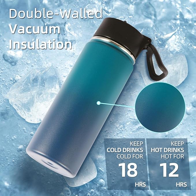 Volhoply 18oz Kids Insulated Water Bottle,Stainless Steel Water Bottles with Straw Lid,Wide Mouth Reusable Metal Sports Water Flask,Double Wall Vacuum Travel Cups For Cold Drink(Dark Night,1 Set)
