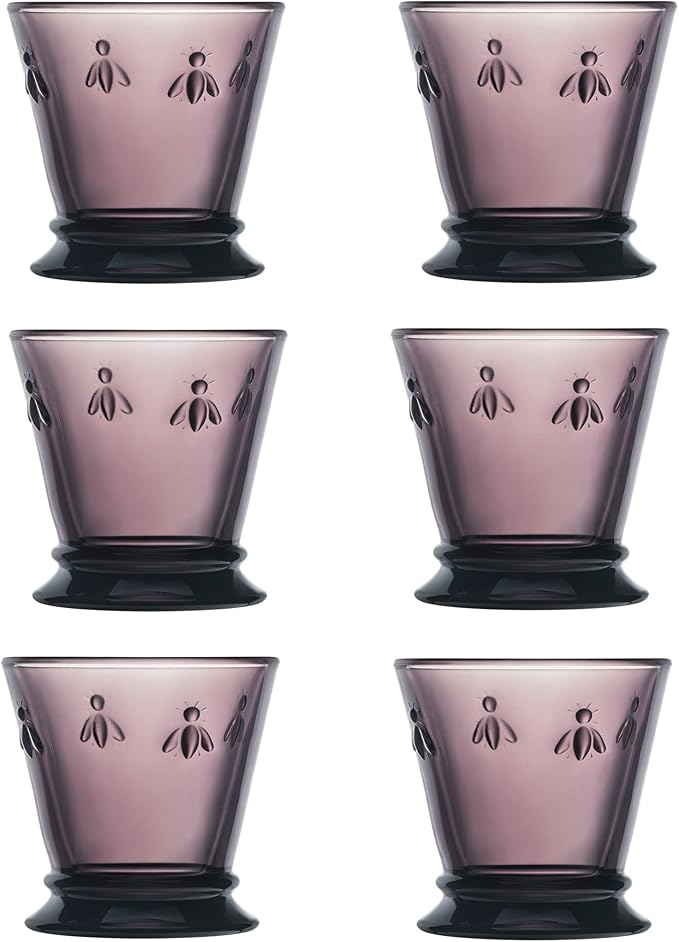 La Rochere Napoleon Bee Aubergine Tumbler Set of 6 – La Rochere Bee Glassware Sets – Fancy Glassware Drinking Glasses (10 oz)