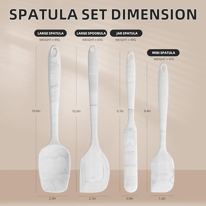 Food Grade Silicone Rubber Spatula Set for Baking,Cooking.High Heat Resistant Non Stick,Dishwasher Safe,Stainless Steel Core Handle,BPA-Free,Marbling set of 4
