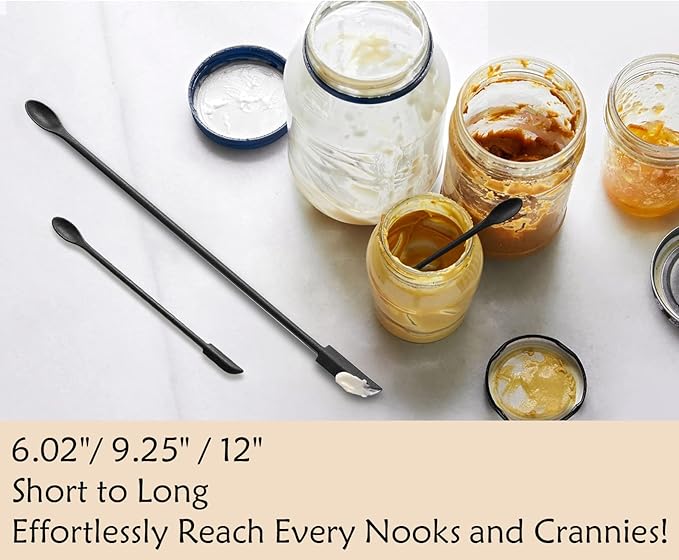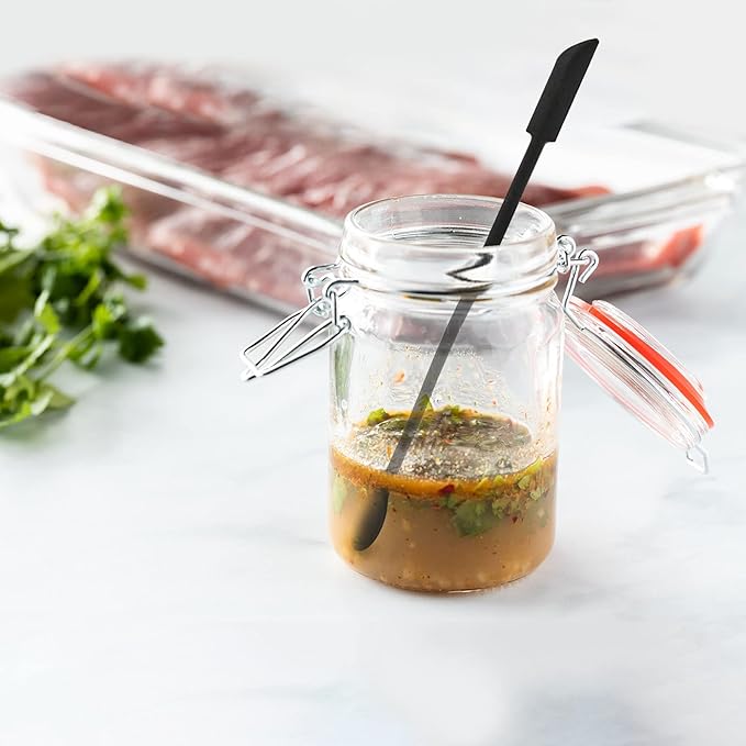 8 Pcs Mini Silicone Spatula Mini Measuring Spoons Set, Reusable Double-ended Tiny Silicone Spoon Spatula and Stainless Steel Small Measuring Spoons for Kitchen Cooking Spice Jars Bottle (Black)