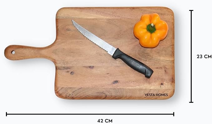 Vesta Homes Wooden Cutting Board/Chopping, Serving Board, Platter for Vegetables, Fruits, Cheese, and Charcuterie | Natural Acacia Wood | 16 * 9 Inches | Handcrafted in India