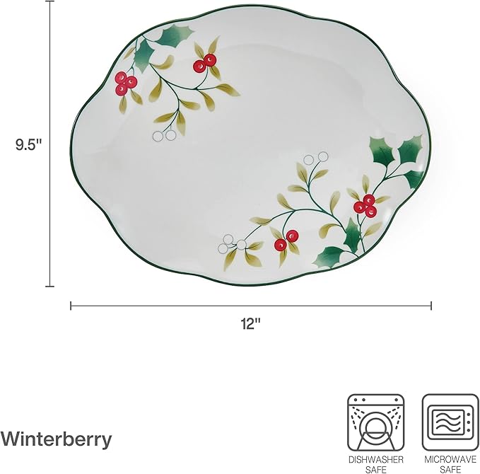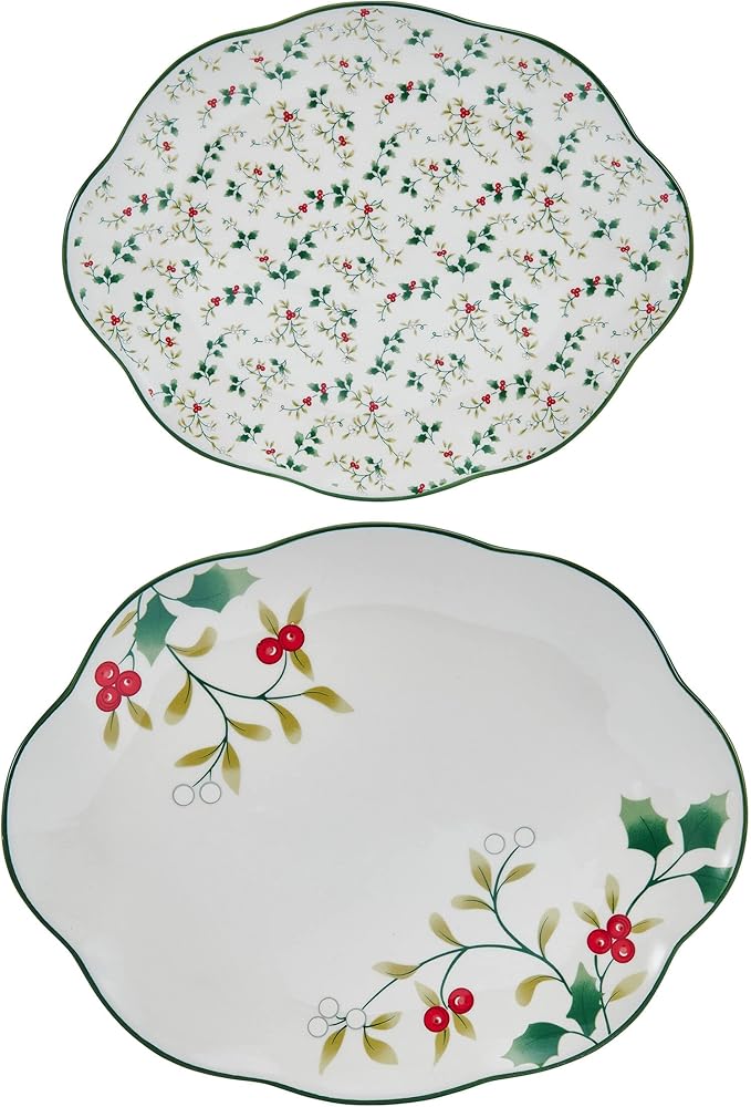 Pfaltzgraff Winterberry Holiday Set of 2 Serving Plates, 10 Inch and 12 Inch, Multicolored