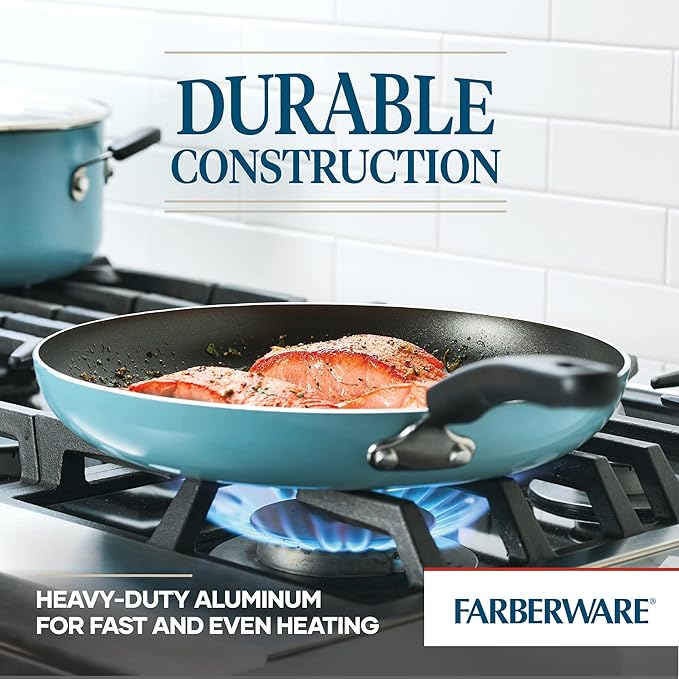 About This DURABLE CONSTRUCTION: Farberware Cookstart frying pan is made from heavy-duty aluminum for quick, even heat distribution and lasting... Read more