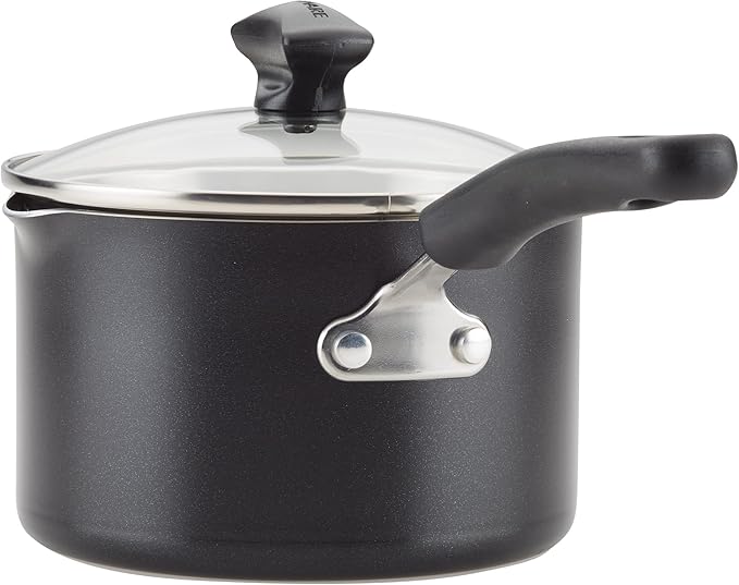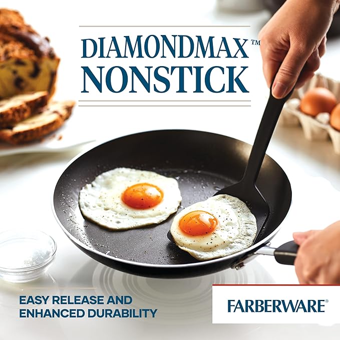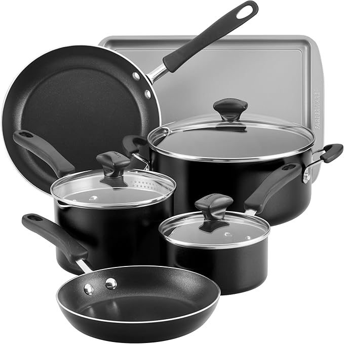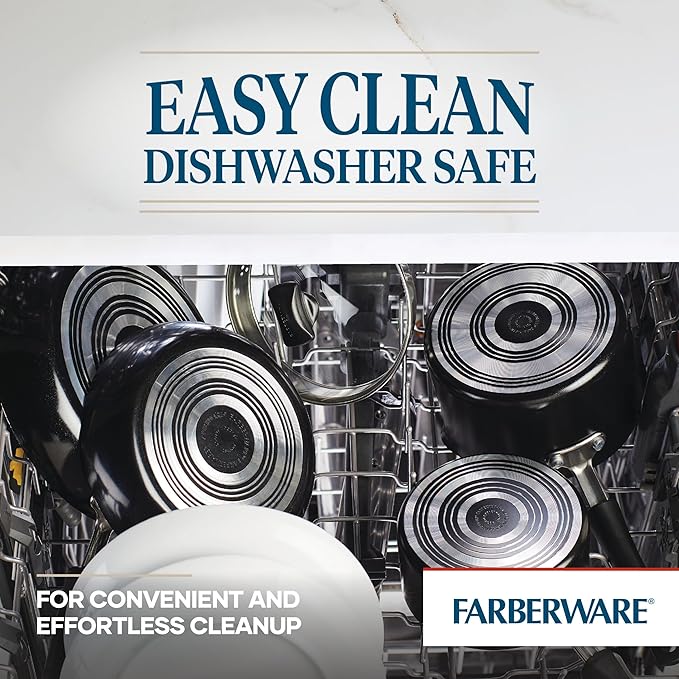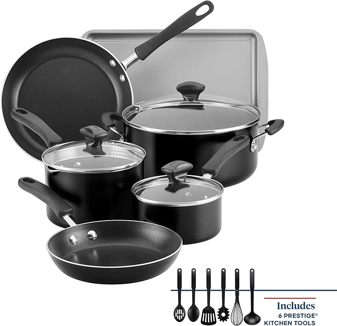 Farberware Cookstart DiamondMax Nonstick Cookware/Pots and Pans Set with Glass Lids, Dishwasher Safe, Includes Baking Pan and Kitchen Cooking Tools, 15 Piece - Black