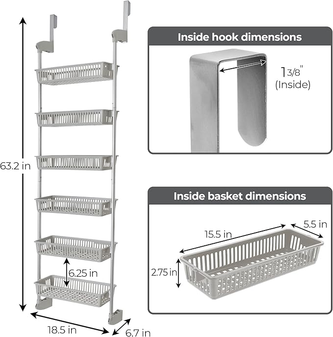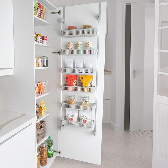 About This Customizable organization and storage: Our adjustable pantry organizer helps maximize storage space; over-the-door pantry organizer extends up to... Read more