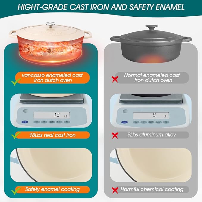 About This 【One Pot For Multiple Use - Suitable For Larger Food】This 9.3-Quart vancasso enameled cast iron dutch oven is... Read more