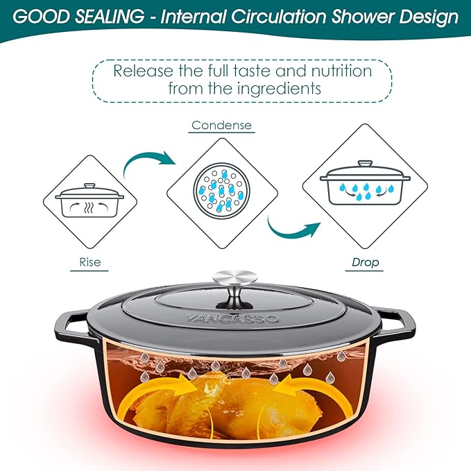 About This 【One Pot For Multiple Use - Suitable For Larger Food】This 9.3-Quart vancasso enameled cast iron dutch oven is... Read more