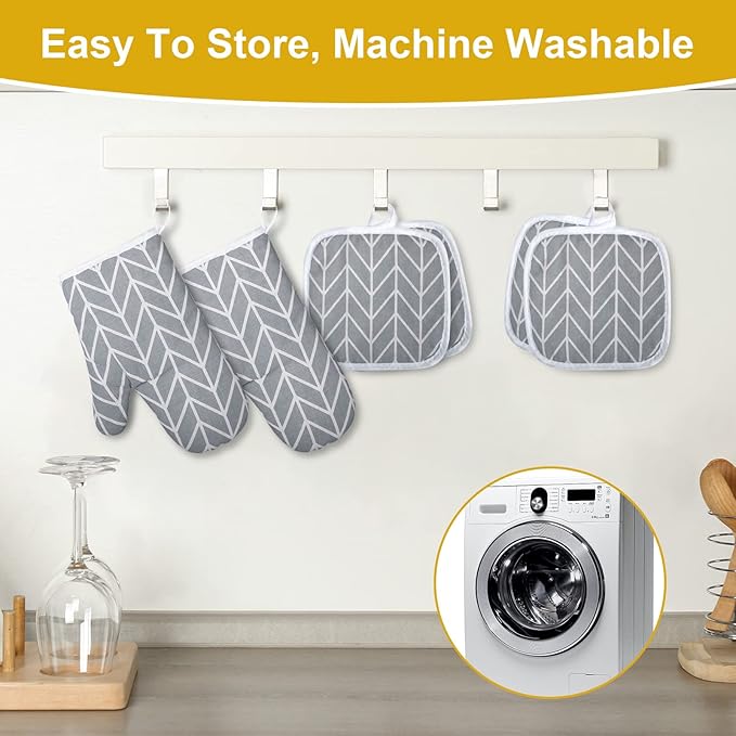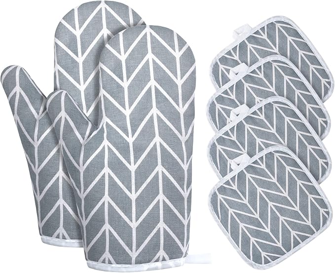 AUAUY Oven Mitts and Pot Holders 6PCS Set, 392°F Heat Resistant Cooking Gloves and Hot Pads Baking Mittens BBQ Gloves, Top Kitchen Gadgets, Non-Slip Kitchen Mittens for Oven Cooking Baking Grilling