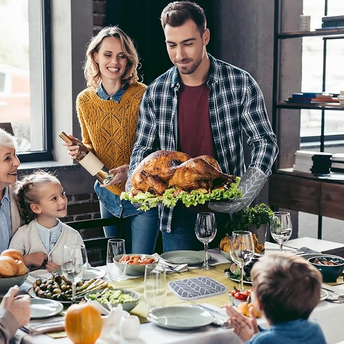 About This 【HEAT RESISTANCE AND FLEXIBILITY】The oven mitt is made of durable cotton material, and the soft quilted cotton lining... Read more