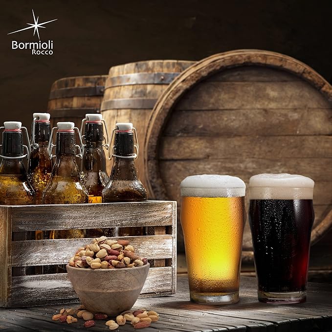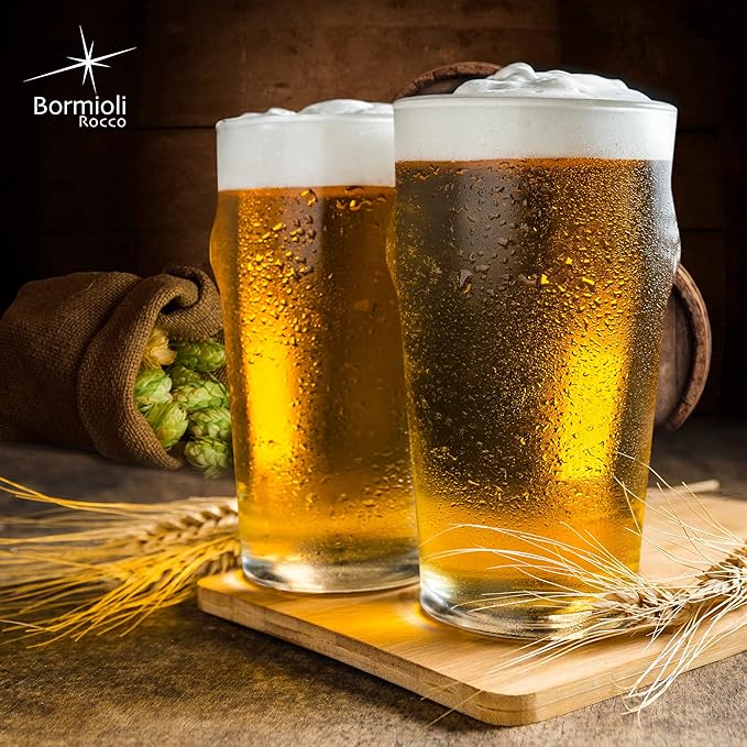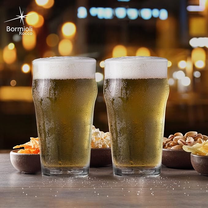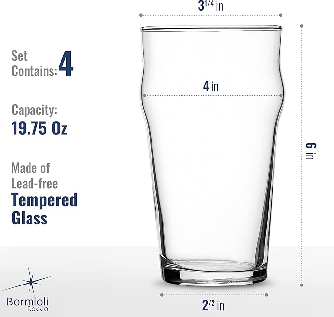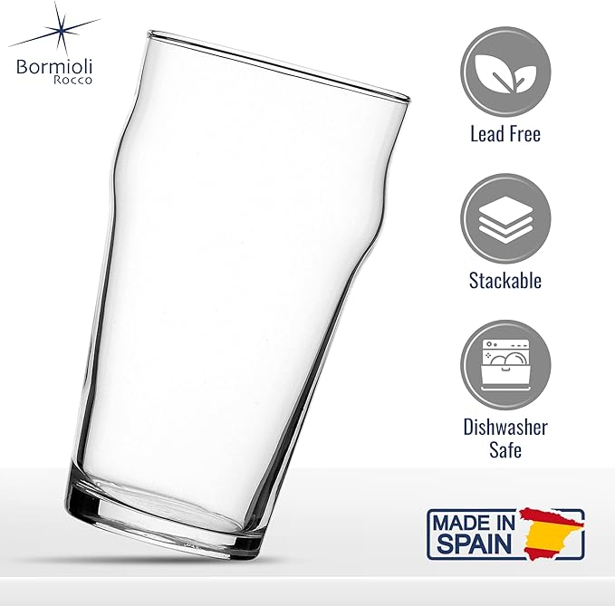 Bormioli Rocco Nonix Set Of 4 20 Oz Pint Glasses | British Pub Style Beer Glasses | Easy Stacking in The Cupboard | Premium Craft Beer Glasses Made In Spain