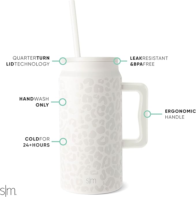 Simple Modern 50 oz Mug Tumbler with Handle and Straw Lid | Reusable Insulated Stainless Steel Large Travel Jug Water Bottle | Gifts for Women Men Him Her | Trek Collection | 50oz | Cream Leopard