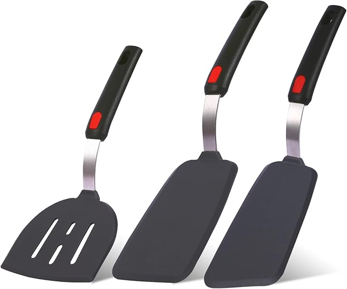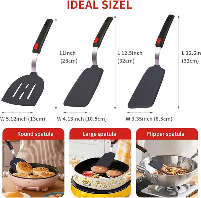 Silicone Spatula Turner Set Large And Thin Flipper Spatulas Heat Resistant 600 ° F Slotted Flexible Turner Cooking Utensils For Nonstick Cookware Egg,Pancake,Fish,Omelette,Hamburger (3 Pack)