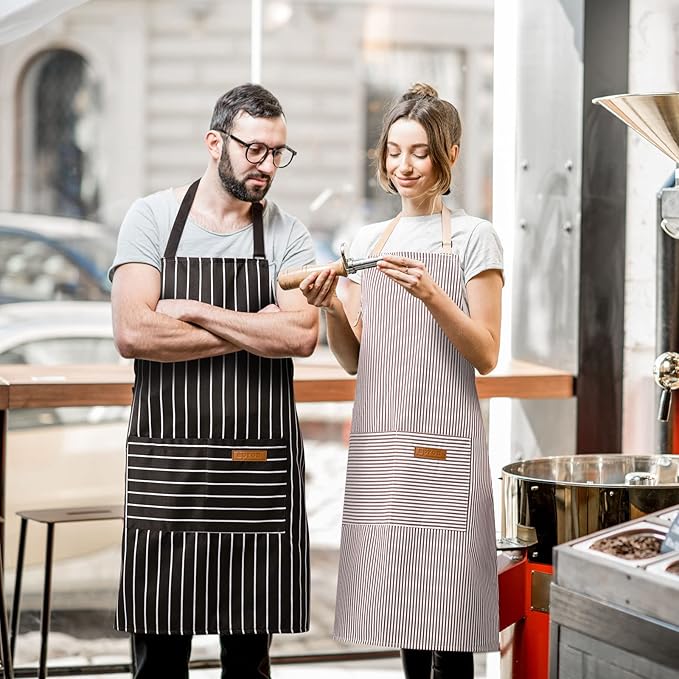 2 Pack Adjustable Bib Apron with 2 Pockets Chef Cooking Kitchen Restaurant Aprons for Women Men
