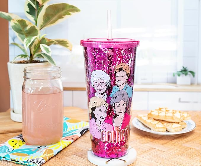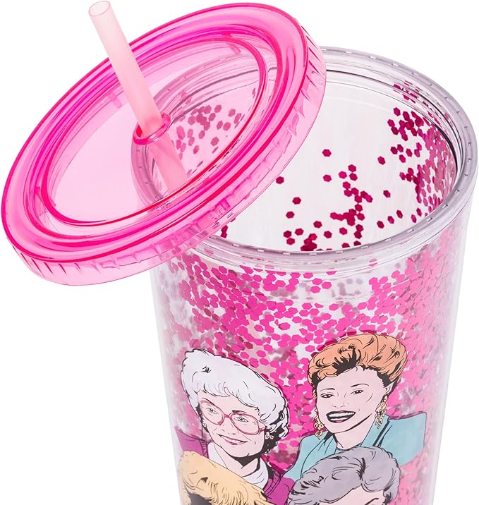 Silver Buffalo The Golden Girls Featuring Blanche, Sophia, Dorothy, and Rose Plastic Confetti Cold Cup with Lid and Straw, 32 Ounces