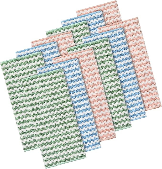 JOYMOOP 12 Pack Microfiber Cleaning Cloth, Larger Kitchen Towels, Dish Rags for Dish Drying Washing, Absorbent Streak Free Lint Free Rags for Cleaning - 11.81" x 15.75"