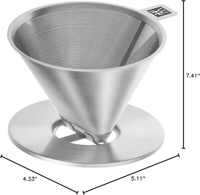 ZWILLING Sorrent Z1024-006 Stainless Steel Coffee Dripper/Mug Set, Double Wall Glass Coffee Mug, Heat Resistant, Cold Insulated, Paperless, Dishwasher Safe, For 1-4 Cups