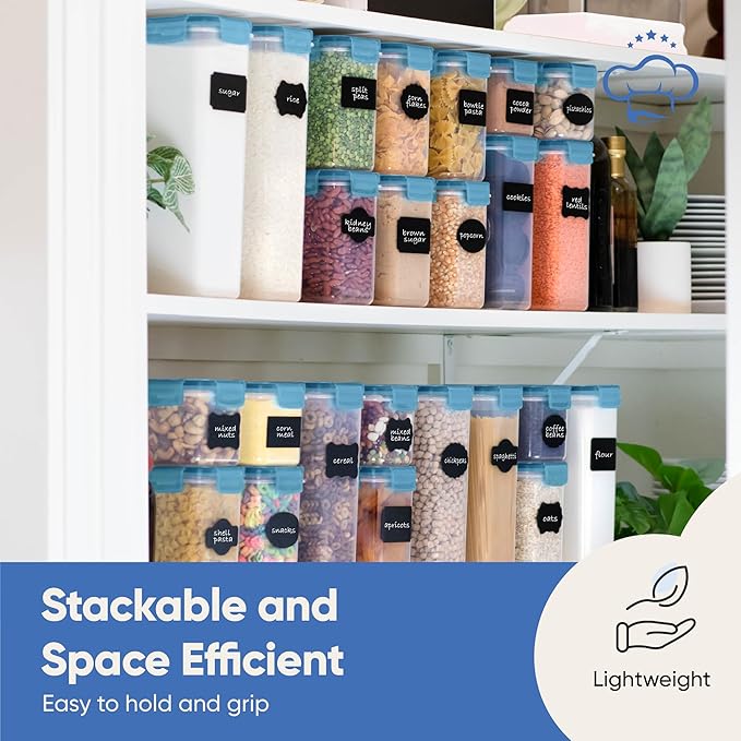Chef's Path Airtight Food Containers with Lids (24 Pack - Blue) Kitchen Pantry Organization - BPA Free Food Storage Organizers for Cereal, Brown Sugar, Dry food - With Marker, Labels & Spoons