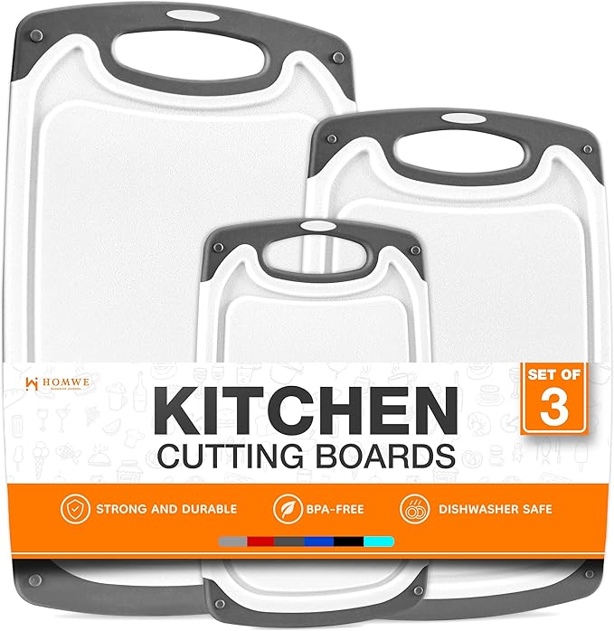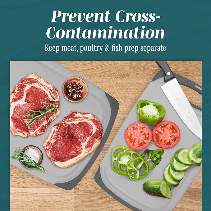 Cutting Boards for Kitchen - BPA-Free Chopping Board - Different Sizes & Non Slip Handles - Reversible, Large Cutting Board Set - Unique Gifts for Cooks Who Have Everything - 3-Pack Gray/Gray
