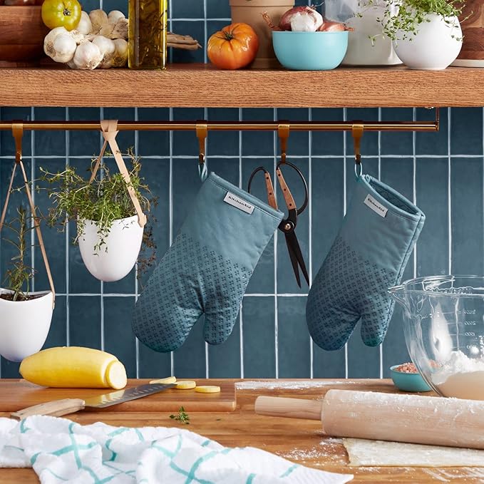 KitchenAid Asteroid Oven Mitt Set, 7"x12.5", Fog Blue, 2 Piece